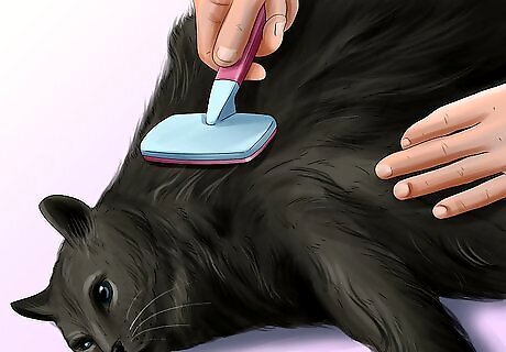 Brush your cat. While it's not a good idea to shave your cat, as its hair actually helps to regulate its body temperature, removing your cat's excess fur is a good idea. Give your cat a good brush so that its thick undercoat is removed regularly. Spending the time to brush your cat also allows you to inspect your cat's body for injuries or infections, such as fleas or ticks.
