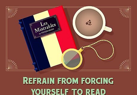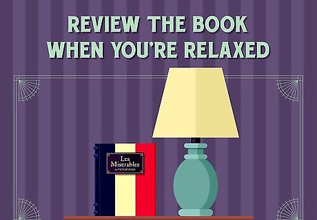Review the book when you’re relaxed. Steer clear of reading when you are stressed or in a hurry. Reading Les Mis when you’re relaxed may help you enjoy the story more. Studies have shown that a positive and relaxing environment can motivate you to read. For example, keep your copy of Les Mis next to your bed. This will allow you to reach for it before you go to sleep. Or, make a date with yourself to bring it to the coffee shop on Saturday morning and read as you sip a cappuccino.