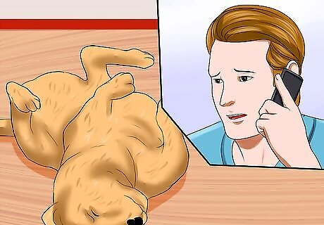 Phone the veterinarian and seek an urgent care appointment. If this emergency happens on a weekend or late at night, call your vets emergency line. If you get not response, you may need to find an emergency veterinary clinic to take your dog to. Make note of your dog's symptoms so you can relay them to the veterinarian over the phone. It's important to know the strength and length of symptoms, so that you can properly communicate the severity of your dog's condition to the vet.