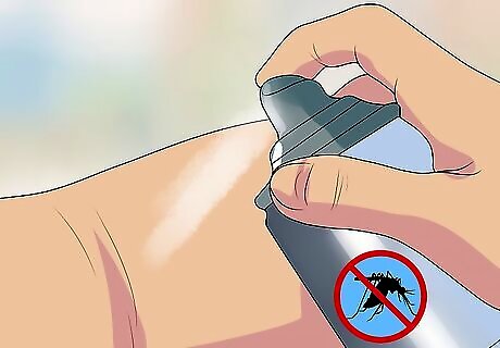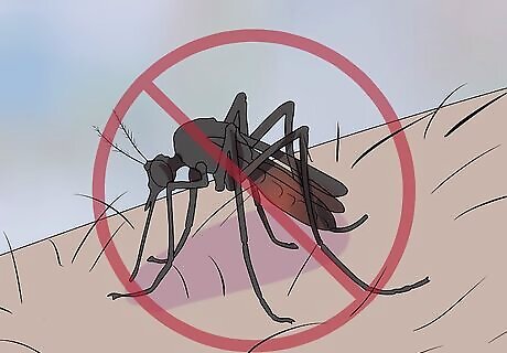 Cover your skin with clothing. As much as possible, wear long sleeve shirts, long pants, and socks. Cover as much skin as possible to minimize areas for mosquito bites.