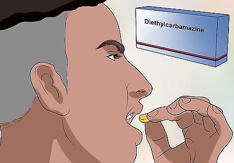 Get medicated to avoid infecting others. Those actively infected with LF can take a yearly dose of a medication called diethylcarbamazine (DEC). This drug does not kill all of the worms, but it prevents you from spreading the disease to another person. If you live in North America or another area where LF is not common, your doctor will have to get this medication from the Centers for Disease Control and Prevention (CDC) or other agency that deals with rare disorders. The medication is usually well tolerated, with minor possible side effects of dizziness, headache, fever, nausea, or muscle aches. Other treatment options are ivermectin and albendazole.