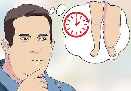 Recognize lymphedema. Because the parasite infection damages the lymph system, the most common symptom is lymphedema–fluid buildup and swelling. This usually occurs in the leg or legs, but can also occur in one or both arms, breasts, and the genitalia. Lymphedema will make the affected area feel puffy, heavy, and swollen; sometimes pressing the skin will leave a small dent due to the fluid buildup. If you experience lymphedema, you should absolutely see your doctor; you can also try to minimize symptoms by: Elevating and exercising the swollen limb to improve the movement of fluids. Washing the affected area with soap and water daily to avoid skin infections. Using antibacterial or antifungal cream as needed, and properly disinfecting any wounds. Washing, disinfecting, and using fungal creams are meant to reduce infection of the affected leg. The swelling decreases circulation to the skin, so there is more risk for infection.