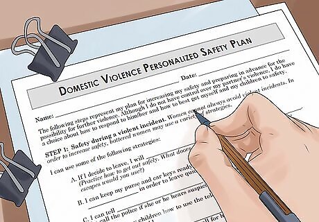 Work with your loved one to develop a safety plan. The National Center on Domestic and Sexual Violence has a PDF form to help victims of domestic violence make plans to increase their safety. You can help your loved one make this plan. Abusive partners may monitor their partners’ internet and computer use at home. Offer to let your loved one use your computer to print out the form, or take them to a public library. Keep a copy of this plan yourself. That way, if your loved one needs help, you’ll know exactly what to do. Formulate a code word. Many abusive partners monitor their victims’ cellphone and other technology use. Agree on a code word that your loved one can use to signal that they're in trouble.