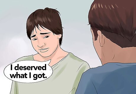 Listen to how your loved one talks. A victim of domestic violence may feel responsible for the abuser's behavior. They may make excuses for the abuser. They may claim to be the only person who "understands" or can "fix" the abuser. If confronted, they may say things such as "But my partner doesn't hit me" or "I deserved what I got." They may seem depressed or anxious. They may also behave in ways that seem unusual, such as being very reserved when they are usually outgoing. They may self-blame for things that go wrong at work or school. Abusers constantly tell their victims that abuse is their fault.