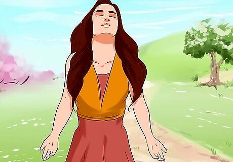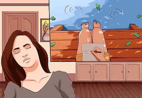 Use visualization. Visualization is a relaxation technique that involves forming mental images to induce feelings of journeying to a calm, peaceful place. The key to a relaxing visualization is to involve as many of your senses as possible (sight, sound, touch, and smell). To be able to do this, get into a quiet spot where you won’t be disturbed. Your body should also be in a relaxed position as if you are meditating. For example, if you are imagining an open meadow, try to feel the grass underneath your feet, smell the lush woods, and hear the sound of birds chirping as they fly from tree to tree.