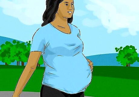 Try pool walking. Though not enough research has been done on this phenomenon, many pregnant have had good luck with water walking. It's likely that the pressure of the pool water on your feet helps reduce fluid in your legs, lowering swelling.[Did You Know? Swimming is a great exercise option for pregnant people. It is a low-impact activity that can help stay fit and healthy during the pregnancy.[Image:Swim-Step-8-Version-4.jpg|center]]