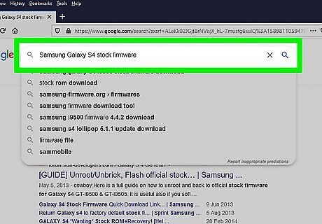 Open your preferred search engine. When your Samsung Galaxy S4 shipped, it had stock firmware--the factory-issue phone processes and settings--installed on it. The first step in removing your phone's privacy protection password is to download that same firmware from a third-party site so that you can re-install it on your device.