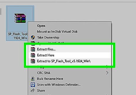 Right-click your file and click the "Extract" option. You should be familiar with this process from the Flash Tools extraction. For simplicity's sake, extract your stock firmware to the same directory you used for the SP Flash tool (e.g., your desktop).