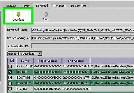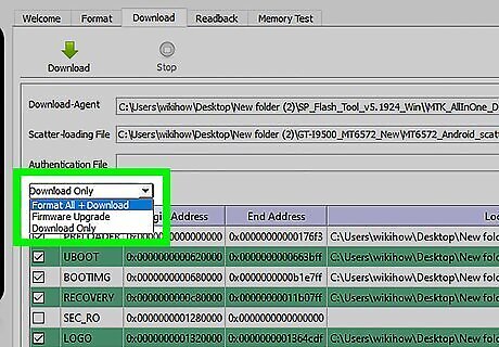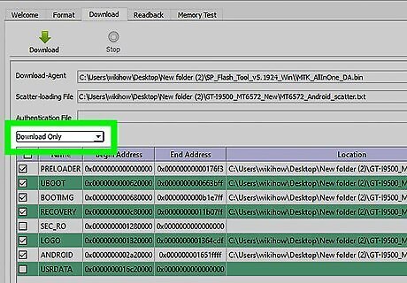 Click the "Download Only" menu. You'll find this above the "Name" and "Begin Address" entries in Flash Tool. Clicking it prompts a drop-down menu.
