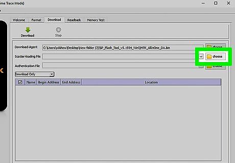 Click the "Scatter Loading" option. This is on the far right side of your Flash Tool interface, directly beneath the "Download Agent" option. Clicking this will open a search window from which you'll need to access your stock firmware file. This is why you should keep both the SP Flash Tool folder and the firmware folder in the same directory.