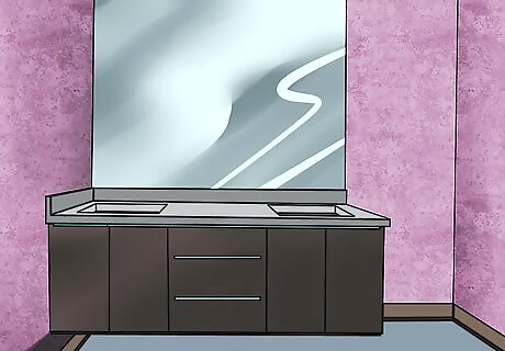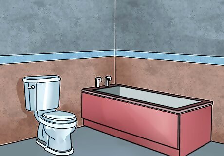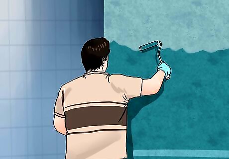 Start by painting your bathroom. Use a paint roller, and be sure to let each layer dry completely before adding another. Most paints will dry between two to four hours, but you might want to refer to the label on your can of paint for more specific drying times. If you don't do this, the paint may not cure properly and become sticky or bumpy. Leave the last coat of paint until after you have installed all cabinets, shelves, sinks, and tubs.