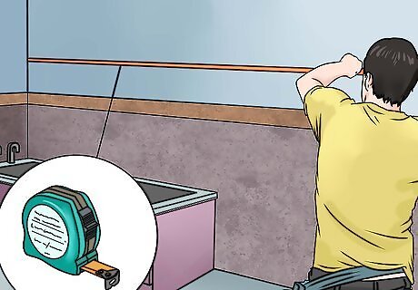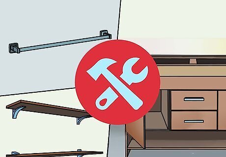 Install any new cabinets, shelves, cabinets, and towel rods. You can place these wherever you want in your bathroom, but keep in mind that you will need to reach these items easily. Here are some guidelines for to get you started: Towel rods should be placed about 4 feet (1.22 meters) above the floor. The top of a cabinet should be about 6 feet (1.83 meters) above the floor. Place the toilet paper roll holder 6 inches (15.24 centimeters) in front of the toilet.