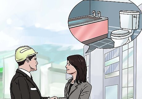 Consider asking a professional designer for help. If you don't know where to begin when it comes to design work, you could hire an architect or interior designer to design a bathroom for you. He or she will know how to work with different colors and materials to create something visually pleasing. The architect or designer will also know how to place things in your bathroom to make them more efficient.
