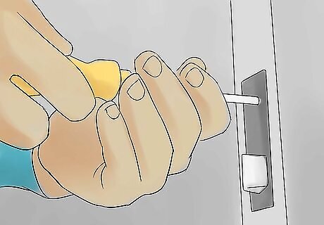 If there is no portion of the key protruding from the lock to grab with pliers, use a straight blade screwdriver (or anything with a blade small enough), inserted or pressed into the keyhole. Press or pull on the doorknob with the one hand so that there is as little pressure as possible on the lock's bolt. Twist the screwdriver to operate the lock much the same way as if the key were attached to the end of the screwdriver, to open or unlock.