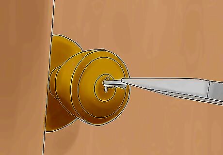 Press or pull on the doorknob with the other hand so that there is as little pressure as possible on the lock's bolt. "Feel" when the bolt is free from pressure while turning the pliers, and open or unlock the door.