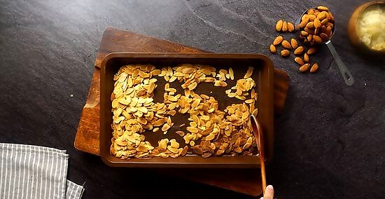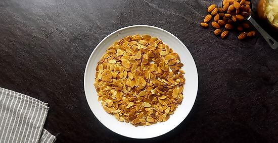 Toss 1 cup (240 mL) of almond slivers with vegetable oil in a bowl. Use about ⁄2 teaspoon (2.5 mL) of vegetable oil. Make sure the almond slivers are evenly coated with the oil.