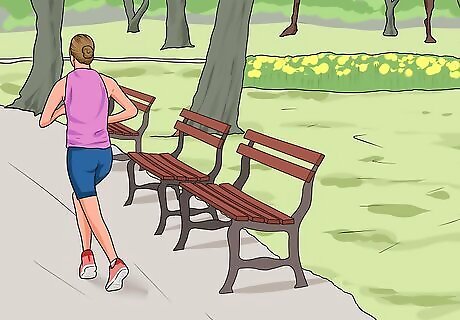Go on “easy runs” to get comfortable running a full 10K. Run the full distance of a 10K at a pace that you're comfortable with and that won't leave you completely out of breath when you're done. This type of run will help you build the aerobic base you'll need on the day of the race without overtaxing your muscles. For a typical training routine, easy runs should be performed about 3-4 times a week. If you're just starting out with running, focus on just being able to complete this distance at first, even if you have to slow for a walk sometimes.