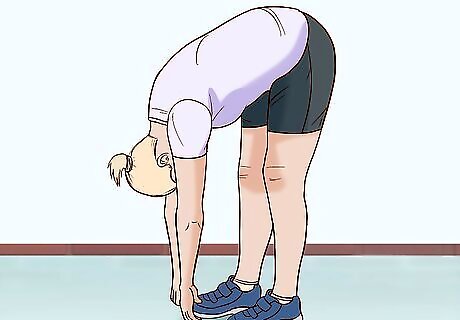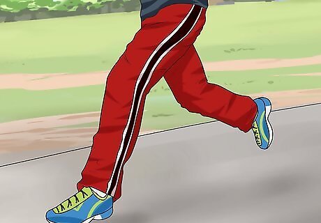 Warm up with some stretches and a light jog before the race. Go on a brisk walk or light jog for about a mile to loosen up your leg muscles and help avoid injury. To stretch these muscles, place one of your legs slightly forward and lean down to touch your toes. Continue walking around at a comfortable pace in the time leading up to the start of the race. This will keep your leg muscles warm and loose before you start running.
