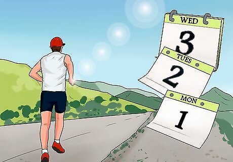 Plan to train on a consistent basis each week. Set aside time every day that you can fully devote to training for the race. For best results, run at least 4 days a week to keep your body used to this activity. Ideally you should be training closer to 5-6 days a week, as long as you don't experience any sharp pains in your legs. Be sure to give yourself some time to rest and recharge your batteries.