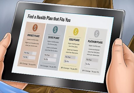Browse the plans available in your state. You have the ability to view the plans in the marketplace and their prices before you start your application, so you can compare and choose the plan that's right for your business. Checking plans in advance is especially beneficial if you need to consult business partners, managers, or other employees before you make your final selection. Plans are organized in the marketplace by metal level. You can evaluate bronze, silver, gold, and platinum plans. While plans in each category offer the same coverage of essential medical services, they differ in terms of the amount of money your employees will have to pay out of pocket. Plans with higher premiums tend to have lower out-of-pocket costs, including lower deductibles and smaller copays.
