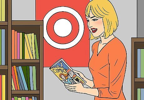 Go into a store that sells comics and read them there. If you have a few hours to spend reading, walk into a store and pull a few issues off of the shelves. Find a quiet place in the store to sit down, or remain standing and lean against the wall to make it seem like you’re just browsing. Read your comics in peace and put them back when you’re done.Warning: This may not go over well at many smaller, local shops. The employees at Barnes & Noble and Target won’t mind though.