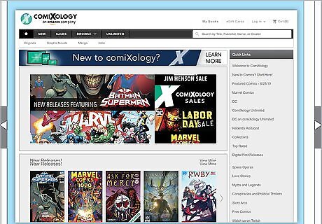 Browse Comixology for single issues or unlimited comics. Comixology is a digital retailer that sells virtual copies of comic books for your computer or e-reader. You can purchase single issues or use their unlimited service, which gives you unlimited access to over 20,000 comics for $5.99 a month.Tip: Comixology is widely-regarded as the best subscription service for monthly readers. They also have a wide array of comics from smaller, independent publishers. If you don’t have a strong allegiance to any single publisher, character, or genre, start with Comixology. Comixology is owned by Amazon, so you’ll need an Amazon account to sign up. You can visit Comixology at https://www.comixology.com/.