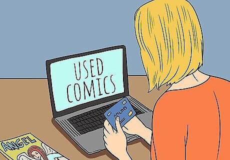 Buy used comics online from private sellers and stores. Buying from private sellers on eBay, thriftbooks, or AbeBooks.com is an excellent way to find some cheaper comics. Search for used copies of newer issues and dirt-cheap copies of older books. Just keep in mind that the cost of shipping can get pretty high and it won’t be worth it if you aren’t buying a lot of comics at once. You can search for auctions on eBay at https://www.ebay.com/. You can scour cheap collections from thriftbooks at https://www.thriftbooks.com/. You can buy used books rom AbeBooks.com at https://www.abebooks.com/. Check out classified websites like Craigslist to see if anyone in your area is selling an entire collection for cheap. Always meet a stranger in a public place when buying something online.