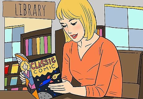 Visit your local library and check out some comics. Sign up for a library card and check out some comic books. It may seem strange, but your local library carries a variety of media, and this includes comics and graphic novels. While they won’t always be the newest issues, it’s an opportunity to get your hands on some free comics. The library is an excellent place to get started if you’re new to comics, since they’ll have copies of the classics, like Watchmen, The Long Halloween, or The Walking Dead.