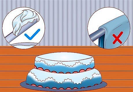 Use butter cream instead of fondant icing. While fondant is beautiful, it costs more than traditional butter cream icing. It takes more steps and materials to make fondant, and it is more difficult to work with compared to buttercream icing. Some bakers even charge extra for working with fondant. Butter cream is not always less expensive. If you want butter cream with a smooth applique finish, it may cost as much as the fondant. People often prefer the taste of butter cream icing to fondant as well. You can save money and make your guests happy.