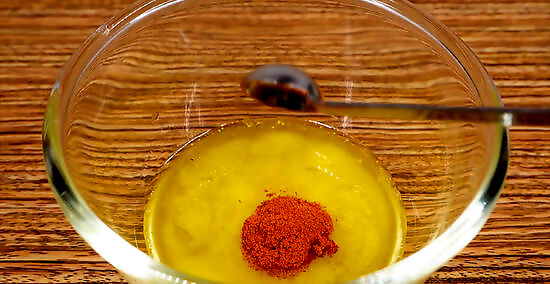 Make a paprika and lemon seasoning to give the fish colour. Paprika gives fish a beautiful red colour. Mix 3 tablespoons (44.4 mL) of melted butter, 1 tablespoon (4.9 mL) of lemon juice, ¼ teaspoon (1.4 grams) of salt, and ¼ teaspoon (0.5 grams) of paprika in a small bowl. Continue to stir the ingredients until they are thoroughly combined. The lemon in this seasoning adds a refreshing contrast to the earthy taste of the paprika. If you don’t have melted butter, use melted margarine instead.