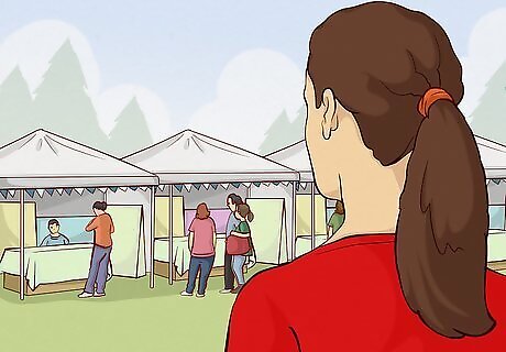 Go to craft fairs. One option for selling your product in person is to buy space at local craft fairs. Most craft fairs are 1 to 3 days long, and you rent your booth space for that period of time. Craft fairs can be lucrative if the shows are well advertised and the community supports them. It's important to make your setup as professional as possible. Tablecloths, decorations, lights, and a professional sign can all add flair to your booth to draw customers in. Also, don't forget to bring your business cards to hand out. If you want to take credit cards, many booths now use card readers that can attach to your smartphone such as Square or PayPal. Some craft fairs limit direct sales to one person per company or none at all. Therefore, if you're selling for a company, make sure to call or email as early as possible to reserve a space, so you can get in ahead of other sellers in your company.
