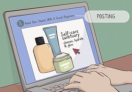 Build up relationships. To build your own business, you must support other businesses by commenting and liking on their pages. The more you interact with other people, the more you get your name out there for the world to see, which only helps you. Part of building relationships is not posting exclusively about your business, especially when you're first getting started. You need to establish that you're interesting and worthy of being followed before jumping into your business talk. Stick to promoting yourself on your page about 10% of the time. The rest of the time, try to push other types of content. That means posting content that's relevant to your business and interesting, either other people's content or content that you've created. For instance, if you're using Tumblr, you can post a short infographic on moisturizing that can be reblogged by other people.