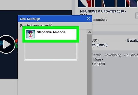 Search for a friend. Enter the first few letters of a friend's name to prompt a list of matching results to appear in a drop-down menu. If you're creating a group chat, click the names of friends to add to the group chat, then click Create in the bottom-right corner of the window. You can then skip the next step.