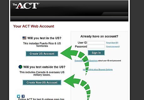 Create an ACT web account to register online. While you can register for the ACT using a paper form that you fill out and mail, registering online is much faster. You also have greater access to your account, including the ability to change the schools you send your scores to. Go to https://services.actstudent.org/OA_HTML/actibeCAcdLogin.jsp to create a web account you can use to register for the test and manage your information.