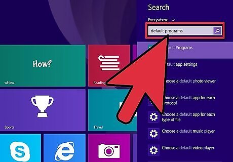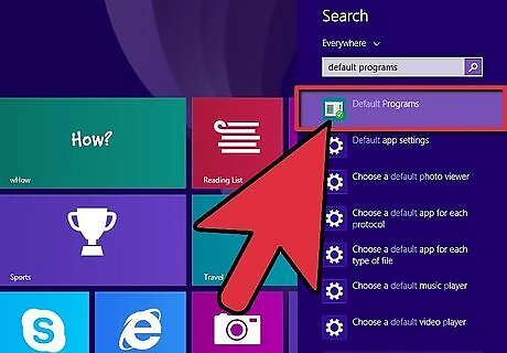 Find the Default Programs utility. On the Start screen, in the Search field, type default program, and then press Enter.