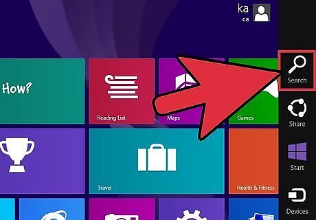 Open the Start screen. Press the Windows key on your keyboard to open the Start screen. If you're using a touch screen, swipe in from the right edge of the screen to open the Charms menu, and then touch Start.