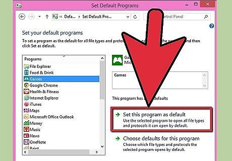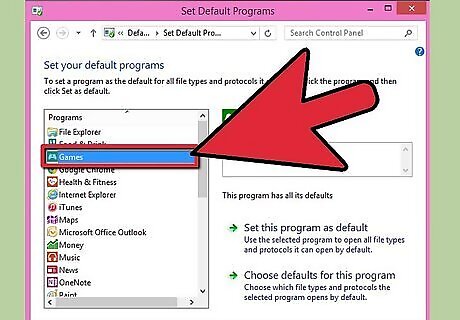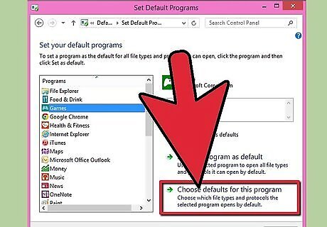 Find a program you'd like to use as a default. In the Set Default Programs window, in the Programs sidebar, find a program you'd like to set as a default, and then click or touch the program to select it.