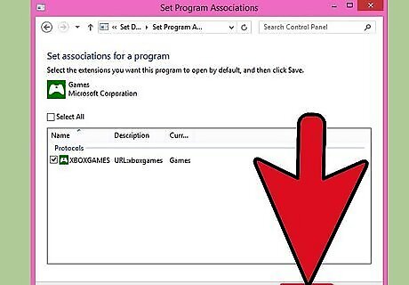 Choose specific file types for the program. In the Set Program Associations window, find the file types you'd like to open with this program, and check the boxes for those file types. Click or touch Save.