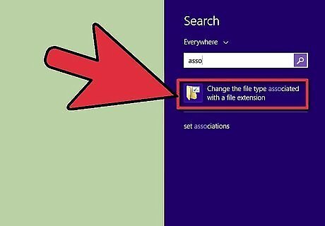 Find the Set Associations utility. On the Start screen, in the Search field, type file associations, and then press Enter.