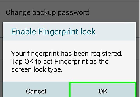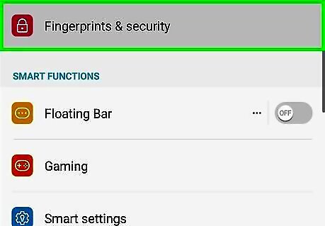Open the Fingerprint Scan option. Under “Personal” in the Settings menu, locate the “Fingerprint Scan” icon; it is a blue circular icon with a white fingerprint in the middle. If you haven’t yet set up a fingerprint, it will not ask for a scan. If you have, however, it will require you to use a registered finger and scan it to access this menu.