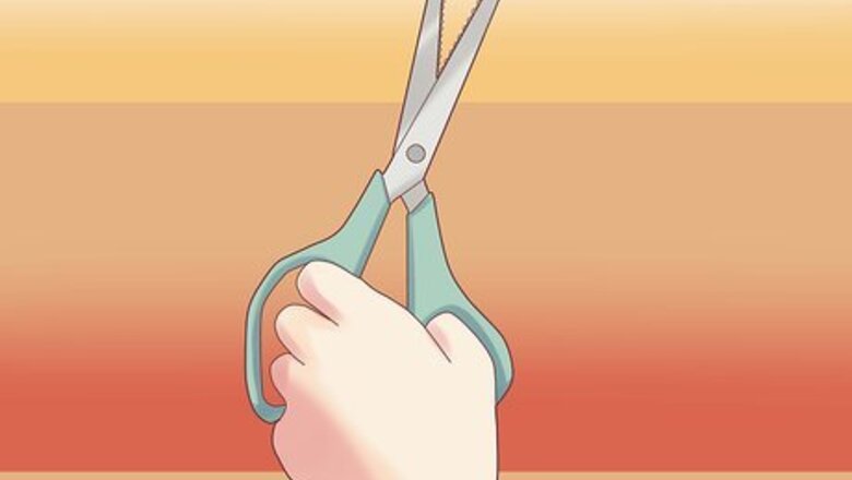 Examine the shears to find the lap line. A different kind of metal with a slightly different color is used for the cutting surface on most good-quality pair of pinking shears. Hold the blade and look at it from the side: there should be a shiny metal on the bottom side, a distinct line, and a darker matte grey metal on the cutting surface. If you don't see this, the shears need to be replaced. They've worn out over time and there's nothing left to sharpen. To sharpen pinking shears, you won't ever sharpen between the individual "teeth" on the blade, which would ruin the action of the shears and make it so they wouldn't cut properly. Instead, you want to sharpen along the flat edge of those teeth on the cutting surface, honing the teeth all the way from the "peak" at the top of each tooth to the "valley" at the bottom.