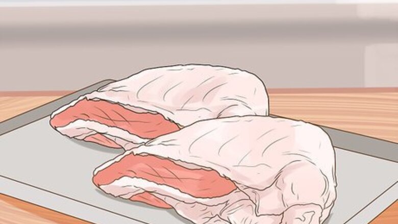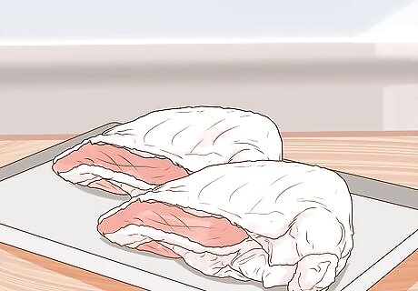 Prepare your chicken. Shredding the chicken with a mixer is only possible if it’s warm. There are many ways of preparing chicken for shredding. For instance, you could bake it in the oven at a temperature of 400 degrees Fahrenheit (204 Celsius) for about 30 to 40 minutes. If you don’t want to cook your chicken in the oven, try boiling it. Finally, you could pan-simmer your chicken on the range in oil. To boil the chicken, just drop the chicken into water and heat to boiling. Cover, reduce heat to low, and wait 90 minutes. To pan-simmer your chicken, just place it in oil at a medium-high temperature for one minute, flip it, and reduce the temperature to low. Cover and let it simmer about 10 minutes. No matter what method you choose, ensure you follow proper safety protocols. For instance, always use antibacterial soap to clean the cutting boards and other surfaces that may have come into contact with the raw chicken, and wash your hands thoroughly after preparing your chicken. Choose the right kind of chicken. Shredding chicken in a stand mixer requires that it is free of bones. Bone-free chicken breasts or thighs are the best option for shredding chicken in a stand mixer.