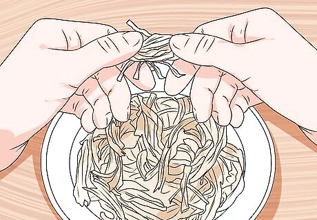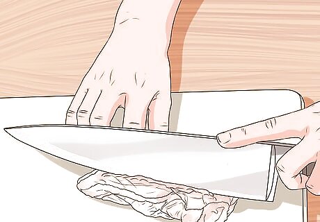 Tear the meat into small pieces. Unlike shredding chicken in a stand mixer, other methods of shredding chicken require giving the chicken a head start on getting shredded. Tear or cut the meat up into pieces no bigger than an inch on any side. Like shredding chicken with a stand mixer, other methods of shredding chicken require that they are free of bones.