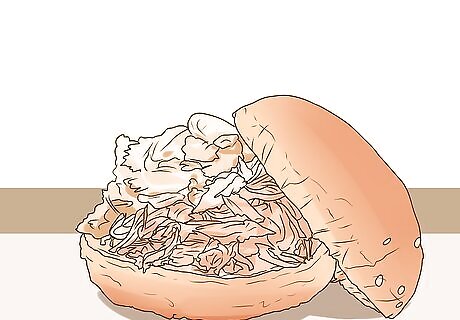 Try a shredded BBQ chicken sandwich. Mix one teaspoon soy sauce, one teaspoon Worcestershire sauce, ¾ teaspoons apple cider vinegar, ¼ teaspoon red pepper flakes, ¼ teaspoon garlic powder, 1/8 teaspoon onion powder, 1/3 cup ketchup, and 1 teaspoon brown sugar together in a small mixing bowl. Transfer the sauce to a medium skillet and add eight ounces of shredded chicken. Heat on medium for three to four minutes, then reduce heat to the lowest setting. Cover for 50-55 minutes, stirring occasionally. Toast some bread or sesame seed buns on a cast iron skillet. Slather the buns with mayonnaise and scoop the BBQ chicken onto it. Eat with a side of green beans and corn. Be careful not to overcook the chicken or it will dry out.