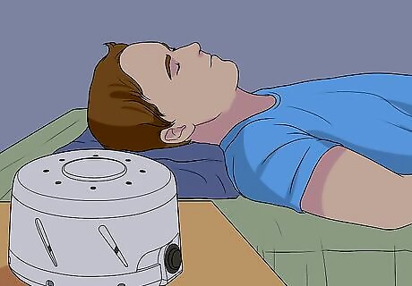 Use a white noise machine. You may want to experiment with white noise, especially if there is a lot of background noise in your house or neighborhood. White noise can cover up bothersome noises that would otherwise wake you up during the night. Try leaving a fan or a humidifier running during the night. If this doesn’t work or is not appropriate for your situation, you could try a white noise machine specifically designed for sleep. White noise machines range in price from $20 – $100. You can purchase white noise machines online or at home and beauty stores.