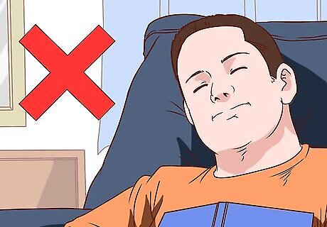 Avoid naps. Napping feels great when you're really drained, and a short "power nap" may help you get through a busy day on little sleep. But even a short nap could reset your internal sleep schedule, causing you to lie awake and restless at night. Instead of napping to catch up on sleep, try going to bed a little earlier that night. You'll sleep more soundly and cut down on the risk of losing even more sleep at night.