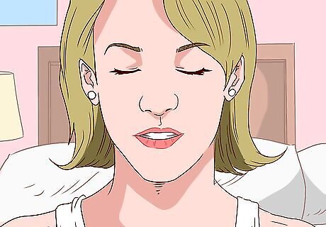 Practice meditation. Meditation helps ease anxiety, and can also help you relax to promote sleepiness. Meditation is not difficult to begin. Simply breathe in and out slowly and deeply from your diaphragm, focusing on the sensation and pattern of your breath. Breathe slowly and deeply. Count to three slowly while you inhale, hold the breath for three seconds, then exhale slowly to the count of three. Repeat as many times as necessary to feel calmer and more relaxed. Try using a mantra. Some people find that meditating to a particular phrase over and over helps them relax. Some experts recommend a good self-affirming mantra, such as "I feel safe and secure at night" or "I will sleep soundly at night."