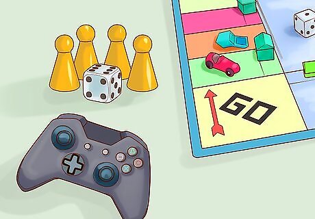 Host a game marathon to have fun competing against your friends. Video games, board games, or card games are great for when the weather is bad and you need something fun to do indoors. Make sure to have lots of snacks and drinks for your friends. Play the same game all day, or switch back and forth to different games depending on what everyone likes best.