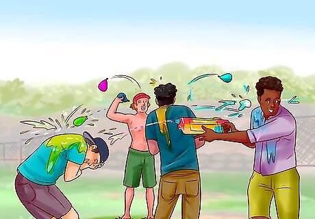 Keep cool by having a water balloon or water gun fight. You can play with no rules, basically meaning that people can get hit multiple times and still not be “out” of the game. You could also lay some ground rules, saying that once someone is hit, they are out of the game. Avoid hitting anyone in the face, and make it clear that no one should run out into the street. As always, when you’re outdoors make sure to wear sunscreen to protect yourself from the sun’s rays.