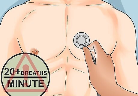 Observe an increased respiratory rate. In addition to an elevated heart rate, all types of shock also typically present with rapid respiration. This is because the fundamental problem in shock is lack of oxygen delivery to the body's vital organs. Therefore, the body tries to compensate for the lack of oxygen by breathing more rapidly. Greater than 20 breaths per minute is considered an elevated respiratory rate.